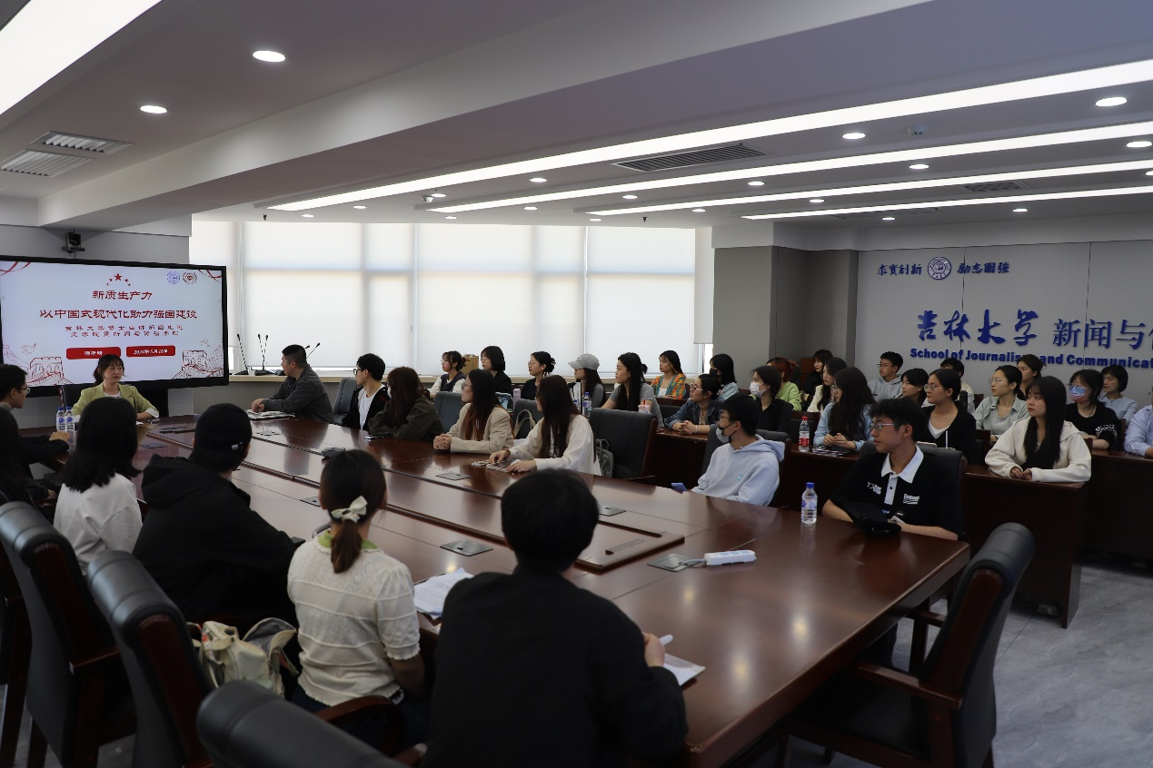 2024年3月,第十四届全国人大二次会议和全国政协第十四届二次会议在北京胜利召开。为深入学习宣传贯彻全国两会精神,充分发挥博士生讲师团理论宣讲作用,引导广大研究生深刻领悟“两个确立”的决定性意义,增强“四个意识”、坚定“四个自信”、做到“两个维护”,感受国家发展成就,为实现中国式现代化贡献青春力量,2024年5月16日,吉林大学博士生讲师团讲师冯子晴走进米兰(中国)一站式服务平台暨新闻与传播学院开展理论宣讲。本次宣讲的主题是“新质生产力——以中国式现代化助力强国建设”。米兰(中国)一站式服务平台暨新闻与传播学院研究生各党支部党员、发展对象、入党积极分子参与了本次活动。