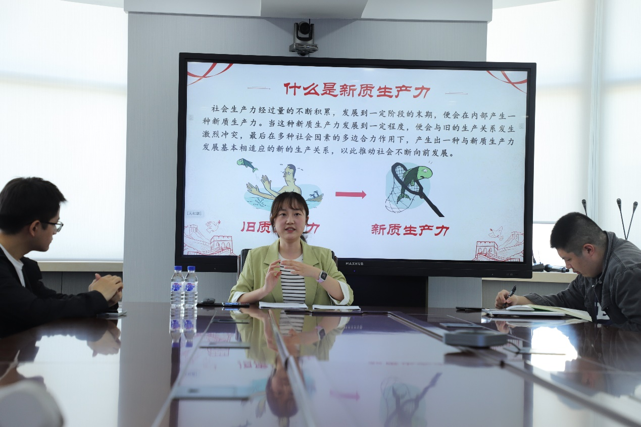 在本次宣讲会上,冯子晴深刻剖析了新质生产力的核心要素,围绕其定义、特征、内涵以及重要战略意义进行了全面阐述。她以“什么是新质生产力”、“为何需要发展”以及“如何有效推进”为三个核心议题,展开了一场深入而富有见地的讨论。