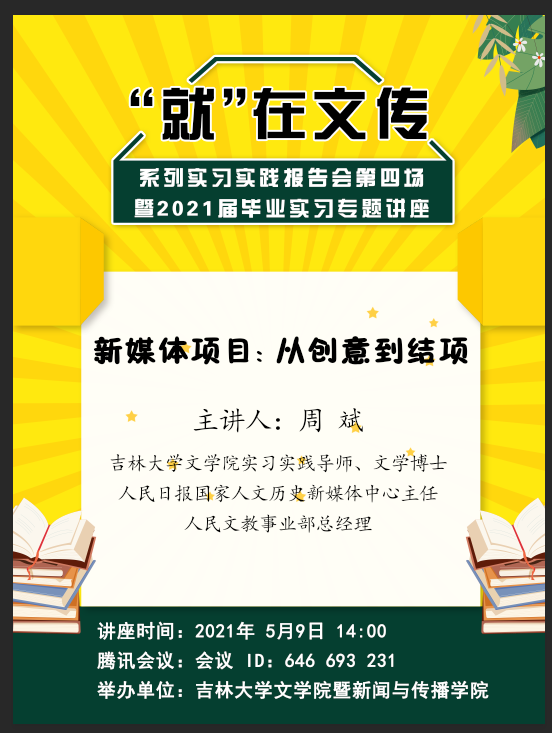 讲座时间:2021年 5月9日 14:00腾讯会议:会议 ID:646 693 231 举办单位:米兰平台暨新闻与传播学院
