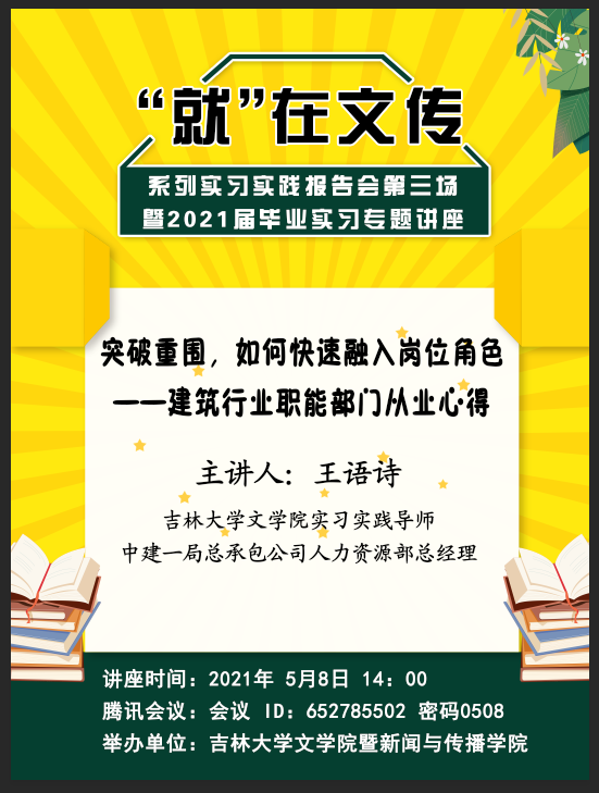 讲座题目:突破重围,如何快速融入岗位角色——建筑行业职能部门从业心得主讲人: 王语诗 米兰平台实习实践导师 中建一局总承包公司人力资源部总经理